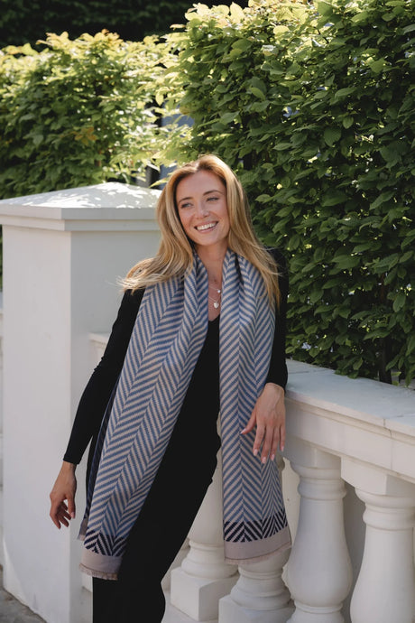 • Blue and Mocha Zigzag Scarf